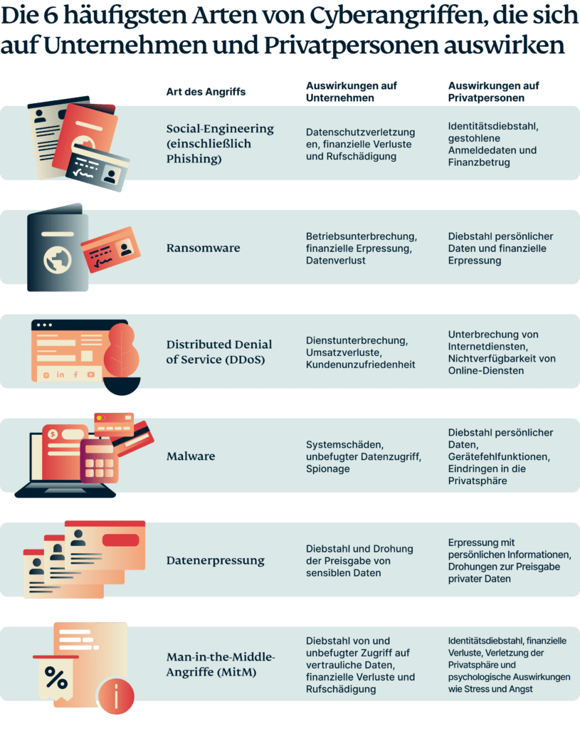 Art des Angriffs Auswirkungen auf Unternehmen Auswirkungen auf Privatpersonen