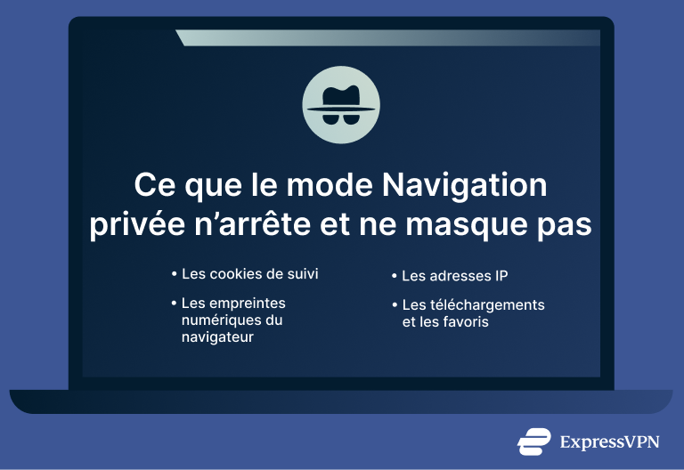 Le mode Navigation privée est conçu pour que votre navigation reste privée sur l’appareil que vous utilisez, et non pour masquer votre identité en ligne.