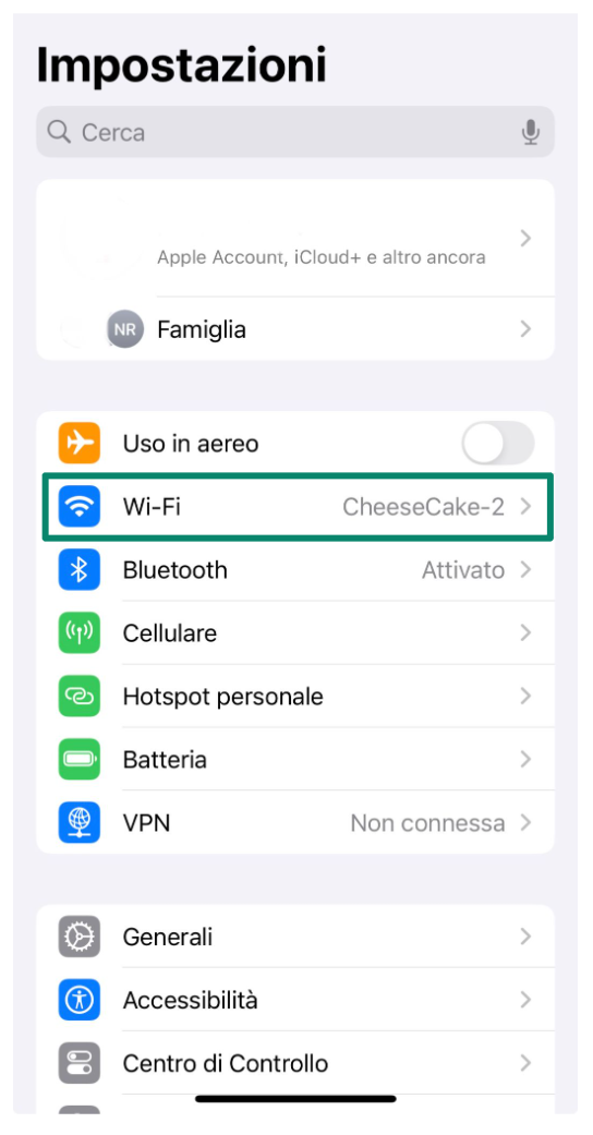 - Apri il menu Impostazioni del tuo iPhone e vai alla sezione Wi-Fi.