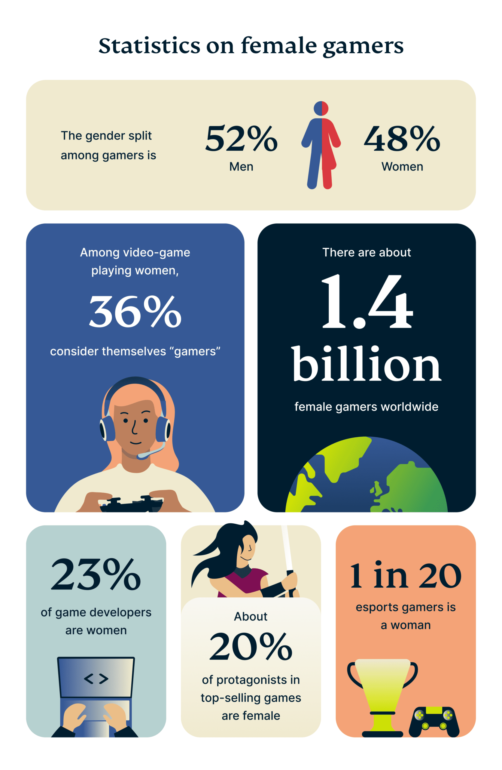 여성들은 경쟁적인 게임과 이스포츠에서도 큰 파문을 일으키고 있으며, 고수준의 이스포츠 토너먼트에 참여하여 종종 우승을 차지하고 있습니다. 그러나 이스포츠 게이머 중 여성은 20명 중 1명에 불과하고, 많은 여성 플레이어들은 여전히 어려운 싸움을 하고 있습니다. 괴롭힘과 문턱 높이기는 여전히 만연하며 여성은 게임기를 들기도 전에 종종 무시되거나 과소평가됩니다.