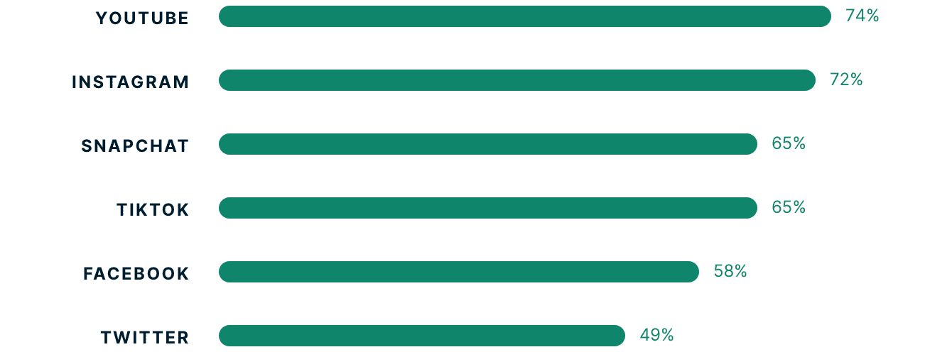 Every member of Gen Z we surveyed said they have at least one social media account, with some spending up to five or more hours per day on a single social media platform. Yet despite the ubiquity of social media use among Gen Z, it’s important to note that most of them say they are fearful of its addictive effects and are envious of those who do not have a social media presence.