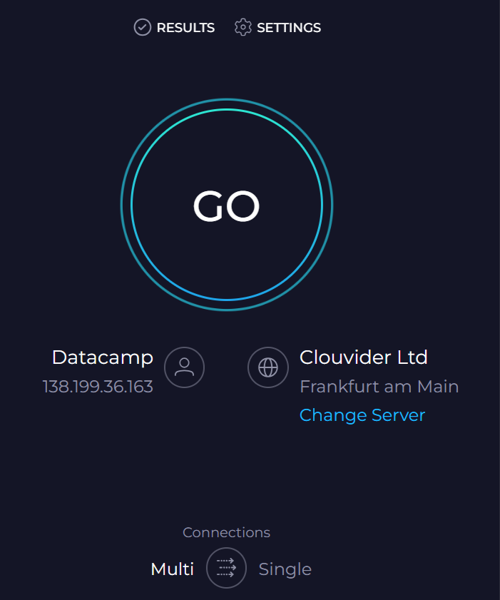 - Now, turn your VPN on: For accurate results, make sure you're using the same speed test server as before, then run the test again.