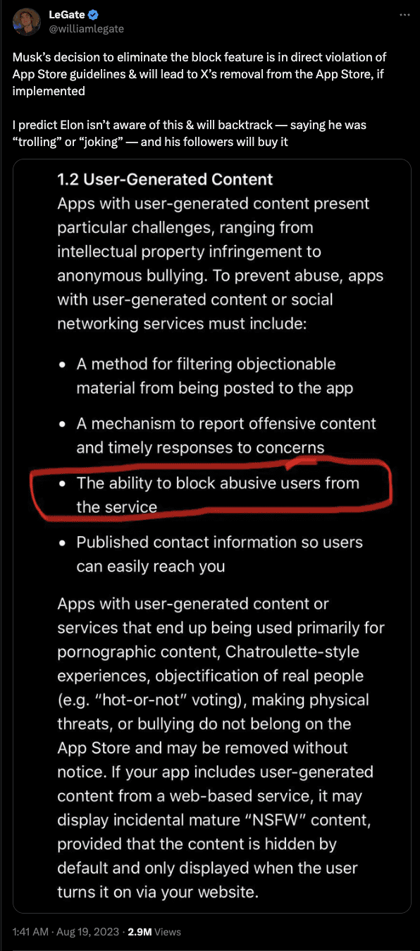 Musk's decision to remove the block feature could put X (Twitter) in conflict with platform policies set by app stores like Apple's App Store and Google Play. These policies require social media platforms to implement robust moderation features, including blocking, to safeguard users from abusive or harmful content.