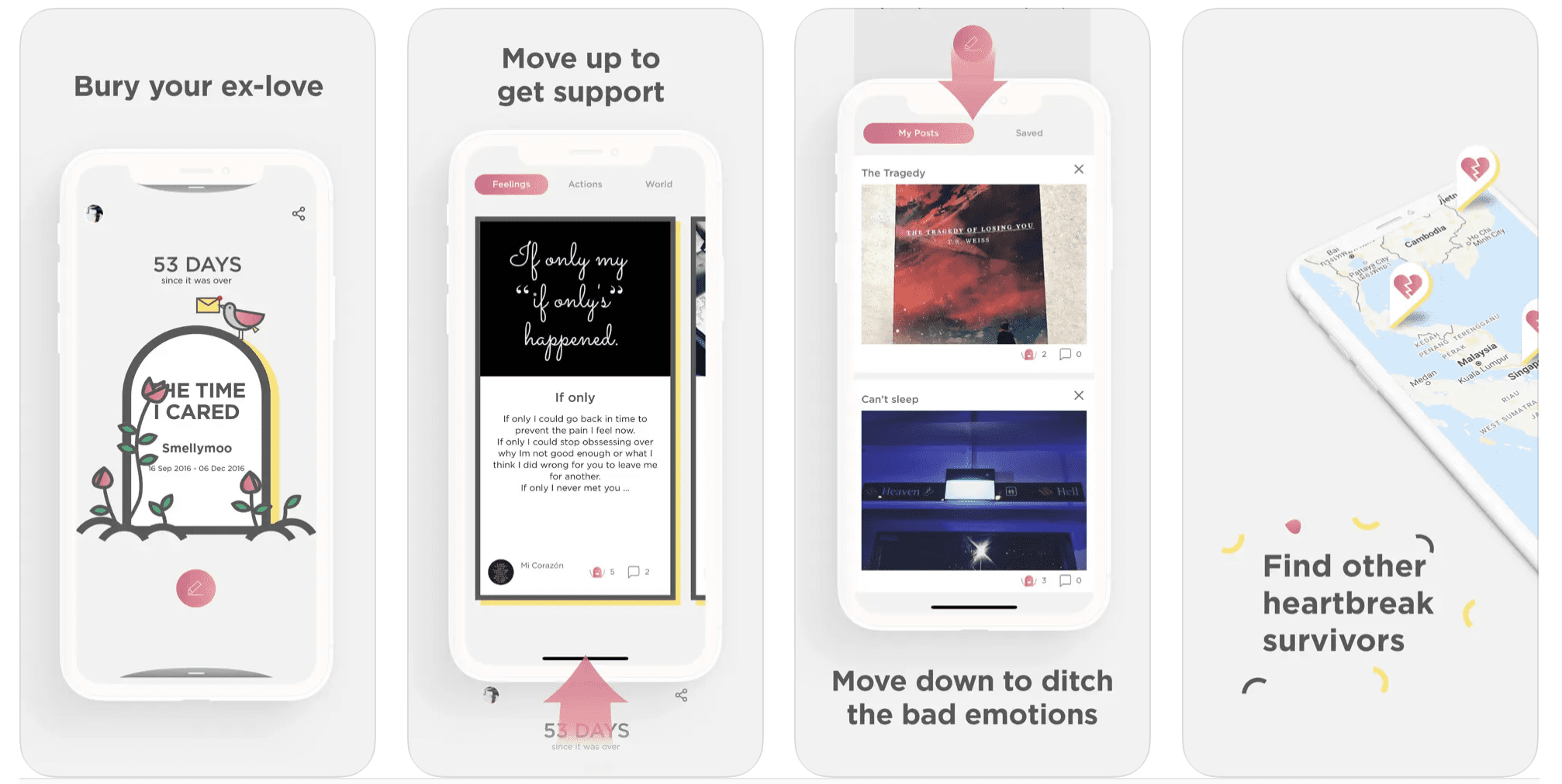 Die App unterstützt die Nutzer, indem sie sie durch den Heilungsprozess führt und betont, dass sie selbst die Kontrolle darüber haben. Ihr Ziel ist es, denjenigen mit gebrochenem Herzen zu zeigen, wie sie den Fokus vom Herzschmerz auf ihr persönliches Vorankommen umlenken können.