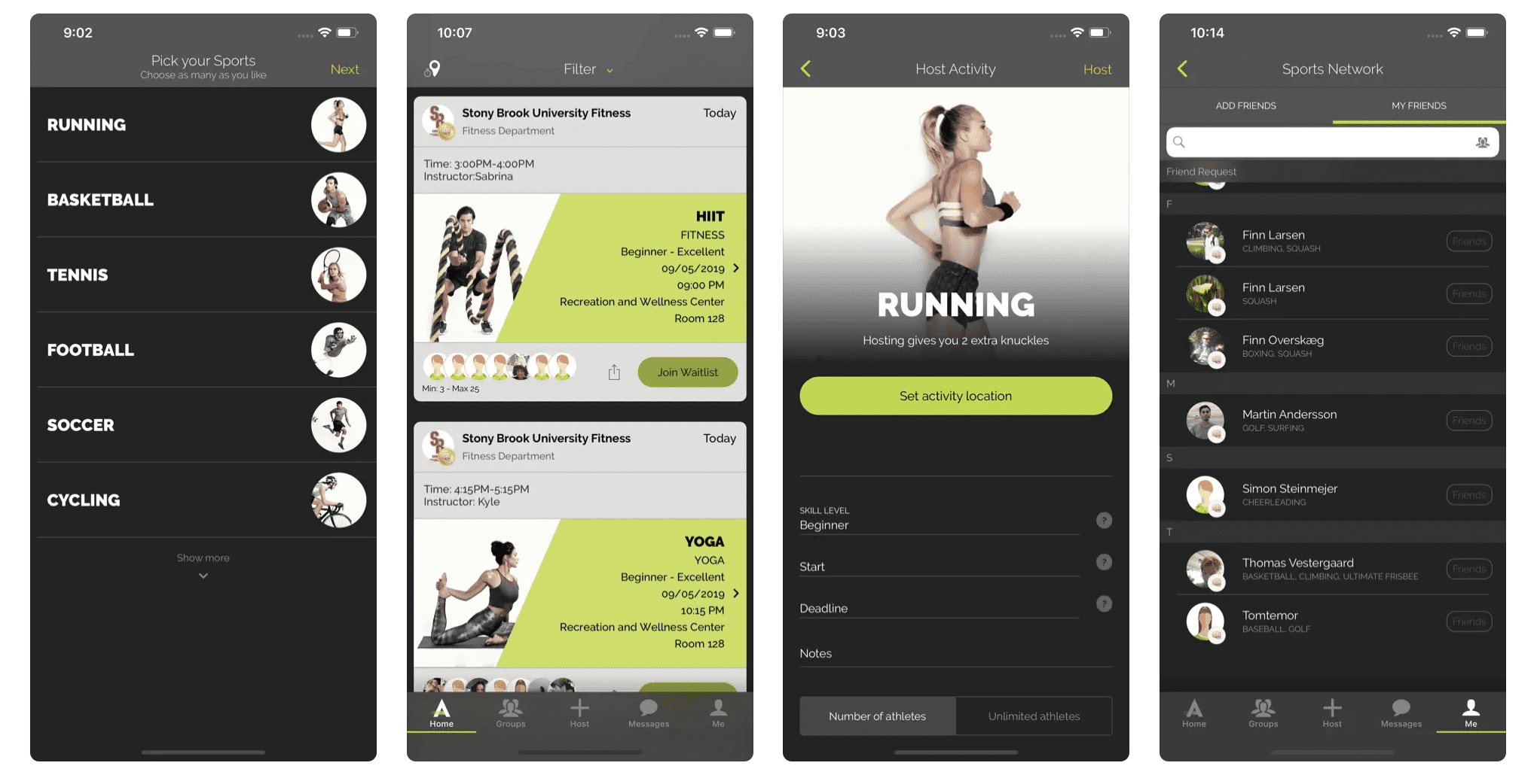 Atleto ist auf Studenten zugeschnitten, die eine Leidenschaft für Sport teilen. Mit einer Auswahl von über 40 Aktivitäten hilft Atleto seinen Nutzern, eine Gemeinschaft von Menschen zu finden, die dieselben Leidenschaften teilen und bereit sind, ins Schwitzen zu kommen.