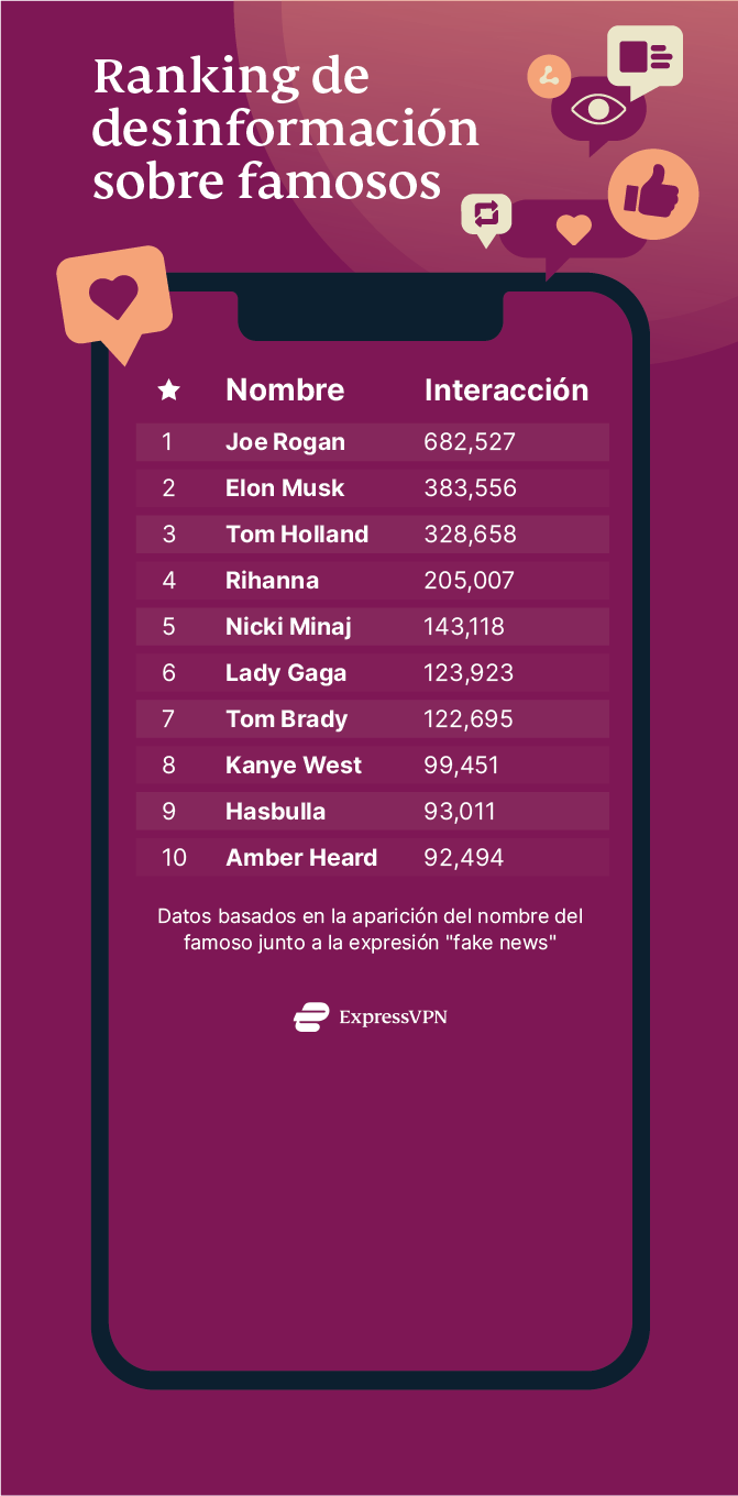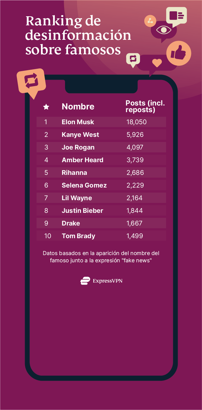 Clasificación: Los famosos más asociados con noticias falsas