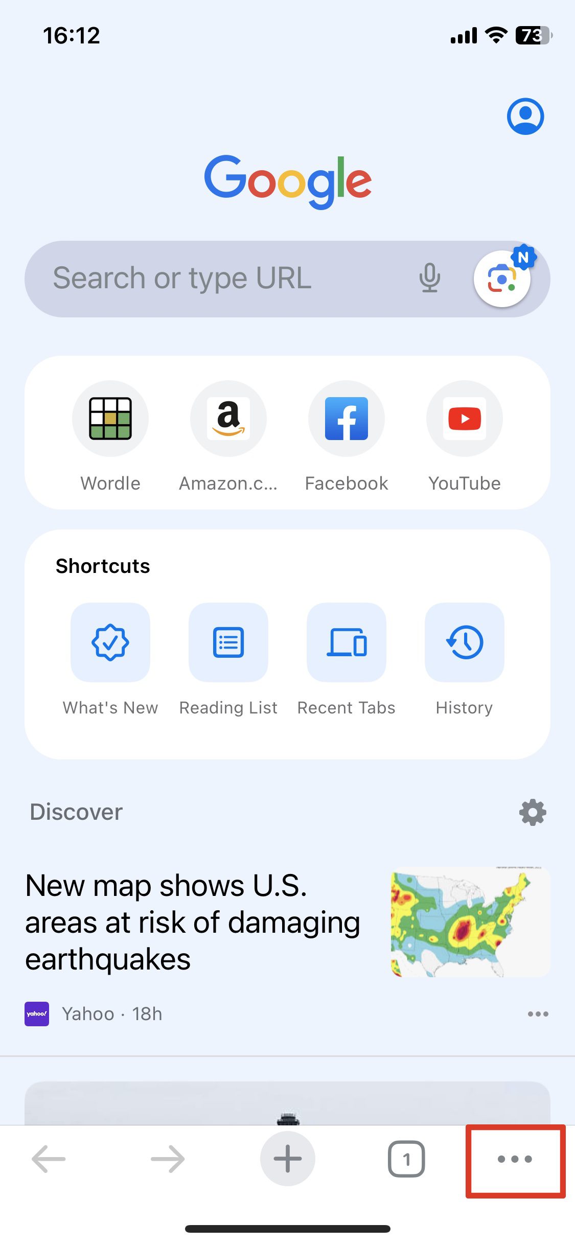 - Toque el botón “Pestañas” (un cuadrado con un número) en la parte inferior de la pantalla.