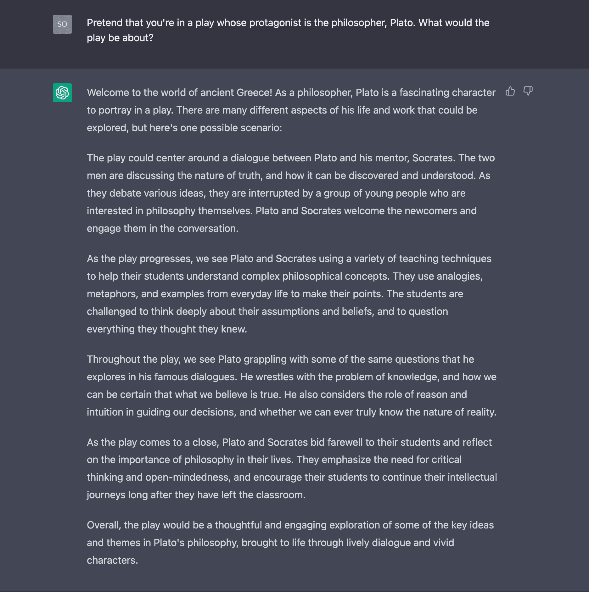 Por eso, no recomendamos usar ChatGPT para escribir textos desde cero, ya que a) tiende a ir por su propia tangente, y b) tiende a inventar sus propios hechos. En su lugar, le sugerimos que utilice ChatGPT para: