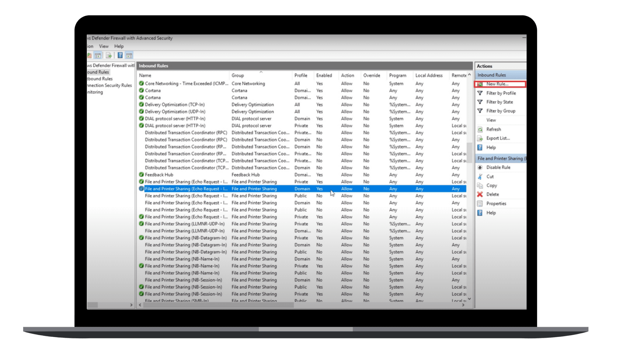 1. Digita firewall nella casella di ricerca, quindi seleziona Windows Defender Firewall con Sicurezza Avanzata.