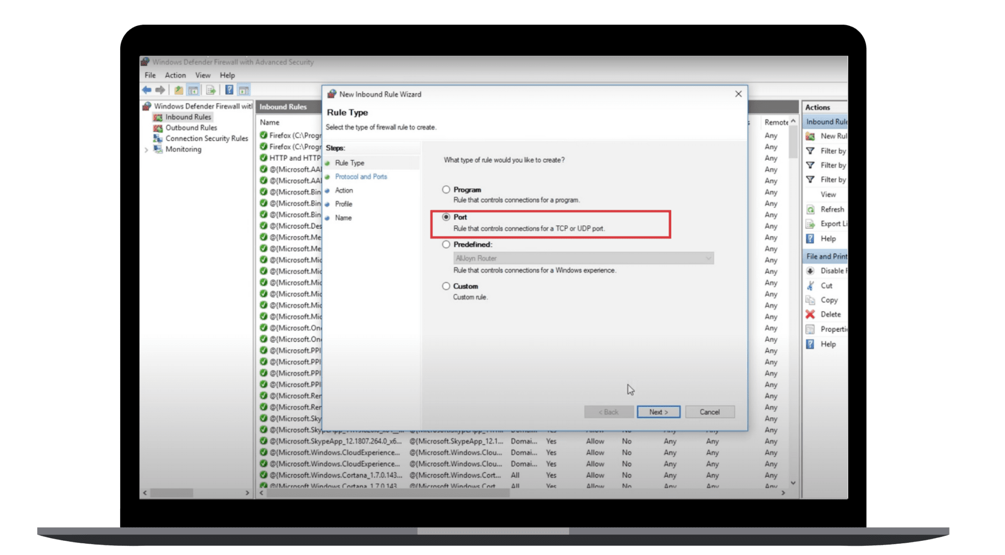Aprire la porta 443 è un po' più complesso che su Mac. Infatti è necessario aggiungerla direttamente al firewall di Windows. Per farlo: