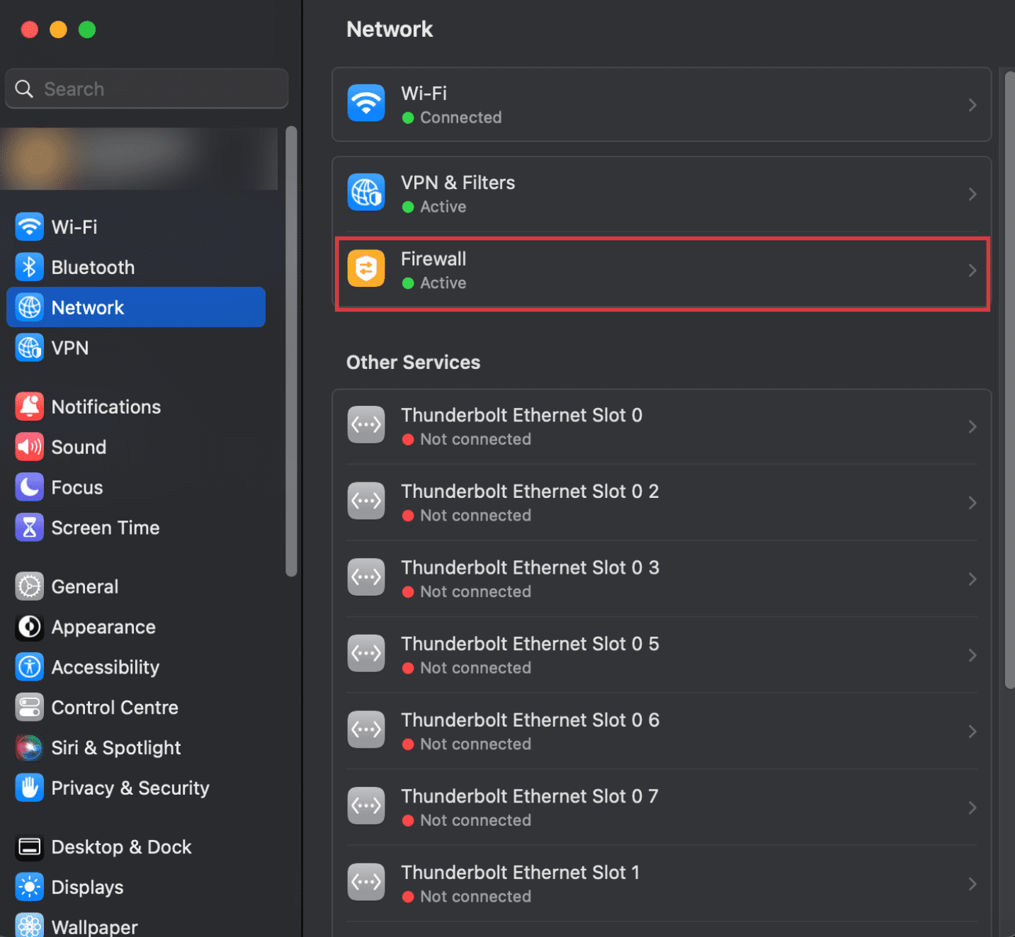 Puoi andare in Impostazioni di sistema > Rete > Firewall per vedere se il tuo è attivo. Se lo è, spegnilo: