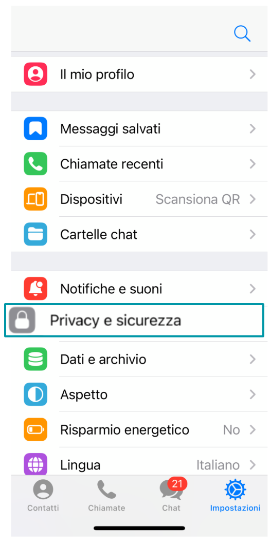 - Seleziona Privacy e sicurezza. Qui puoi definire chi può vedere il tuo numero di telefono, la foto del profilo e l'ultimo momento di attività sull'app. Limitare l'accesso a "I miei contatti" invece che a "Tutti" può aiutare a mantenere più riservati i propri dati personali.