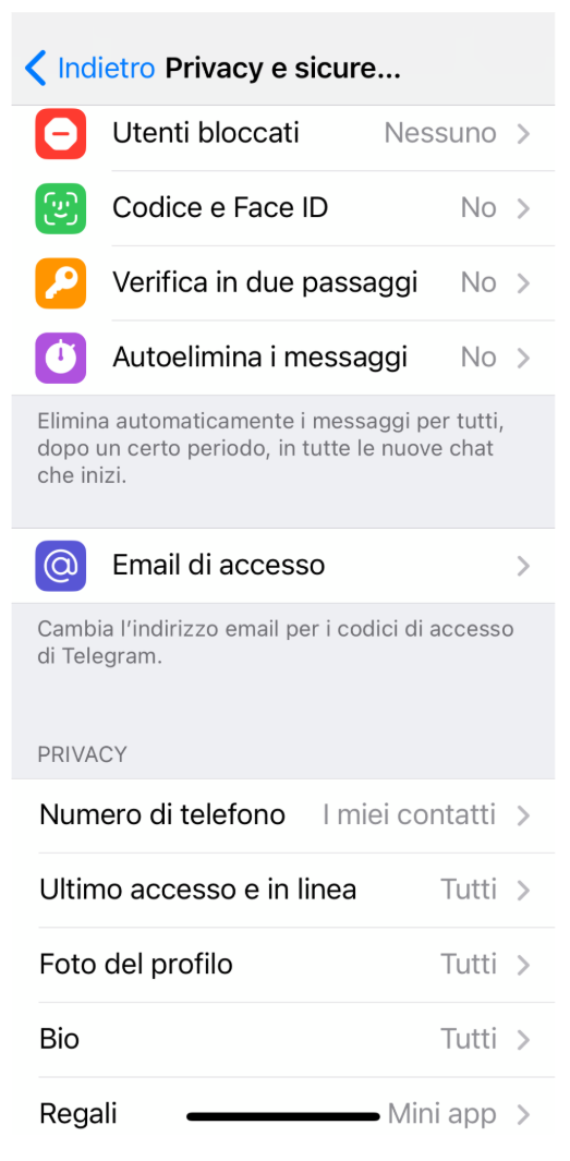 Telegram ti permette di controllare chi può vedere i tuoi dati personali.