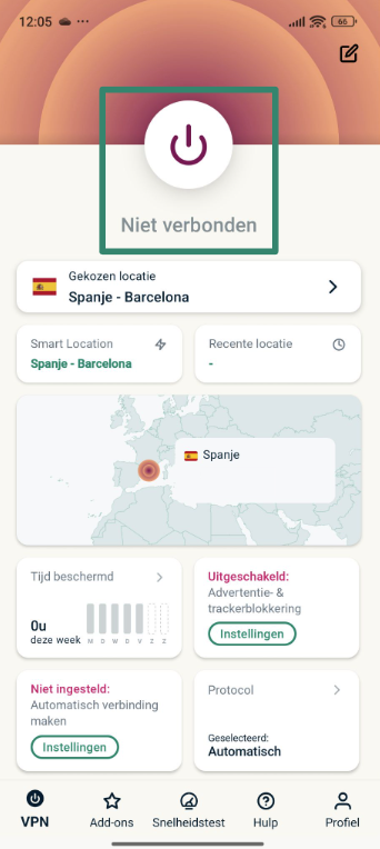 - Tik op de Quick Connect-knop om verbinding te maken met een server en je IP-adres te maskeren.