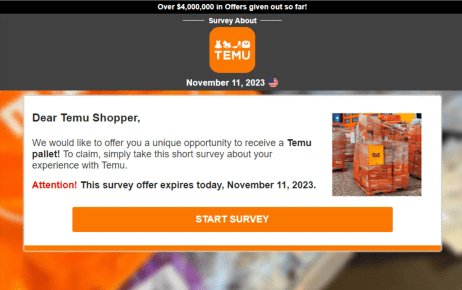 “Bu hızlı anketi doldurun ve favori mağazanız için 100 USD kupon kazanın!” Kim bunu istemez ki? Ancak bu anket dolandırıcılıkları, size hiçbir şey sunmayıp mümkün olduğunca çok kişisel bilgi toplamak için tasarlanmıştır. Anket basit gibi görünse de, detaylarınızı verdiğiniz anda bu bilgiler dolandırıcılar tarafından kullanılır veya üçüncü şahıslara satılır. Daha kötüsü, vaat edilen kupon asla gelmez ve tüm verilerinizin nereye gittiğini merak edersiniz.
